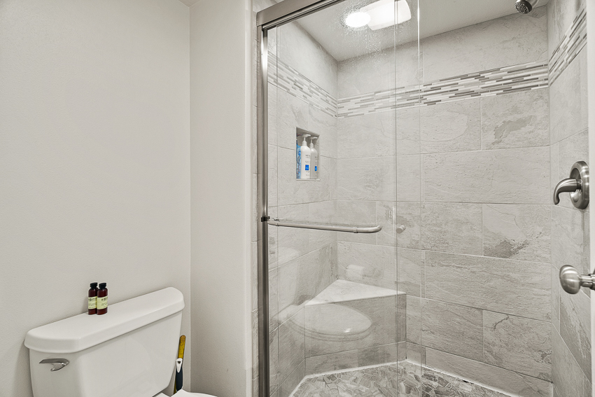 An additional den off the living room provides extra space for an office, reading nook, or overflow guests.